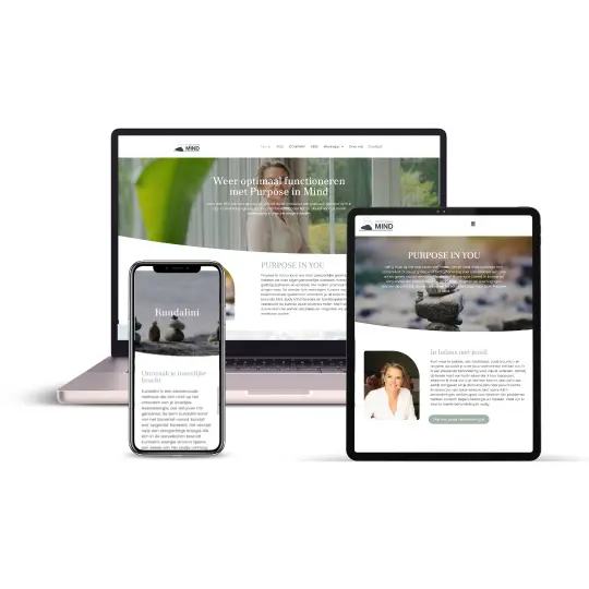Voor Purpose in Mind heb ik een stijlvolle en evenwichtige website ontwikkeld die de missie en waarden van het bedrijf helder overbrengt.