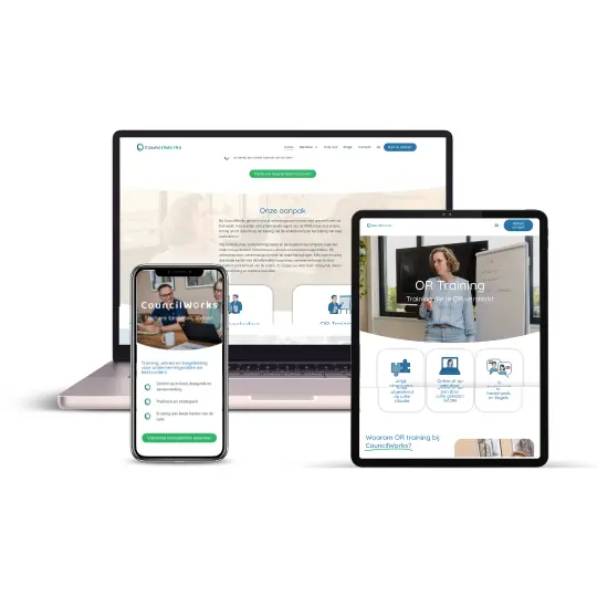 Voor CouncilWorks heb ik de volledige visuele identiteit mogen ontwikkelen, van logo en huisstijl tot de complete website. Samen met de klant heb ik gewerkt aan een merkuitstraling die past bij hun visie, professionaliteit en doelgroep.